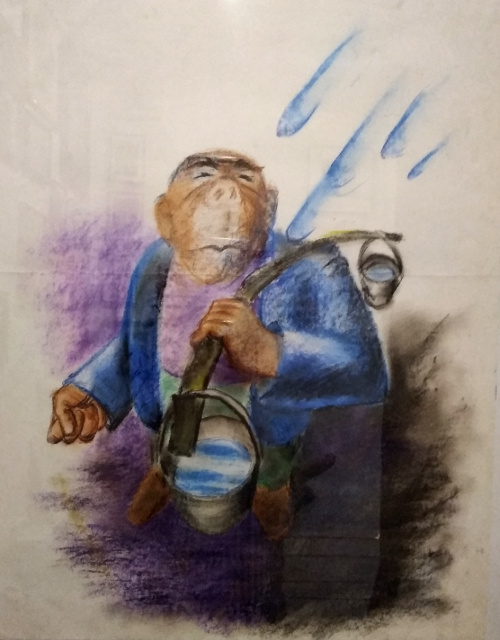 Eine Arbeit, die ich auf der FH gemacht habe: Illustration zu Bertold Brechts Lied vom Wasserträger im Regen.