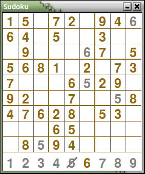 Anmerkung, im Unterschied zu kommerziellen Sudokus ist die Lösung nicht immer eindeutig. Wenn beispielsweise nur zwo Zahlen „frei“ sind bei vier „freien“ Feldern, dürften schätzungweise zwei Lösungen vorliegen. Dann führt „Raten“ nahezu zwangsläufig zur Lösung.