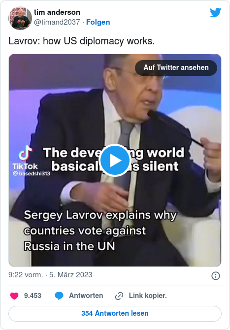 Der Russische Außenminister Segej Lawrow erklärt, waum die Länder in der UN gegen Russland stimmen (Tanskript und Übersetzung unten) (Nachtrag):